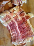 Meanwhile, prepare the bacon. This Hickory Smoked Bacon is a favorite amongst the boys. It comes to R&S straight from Oscar’s Smoke House Upstate NY….
