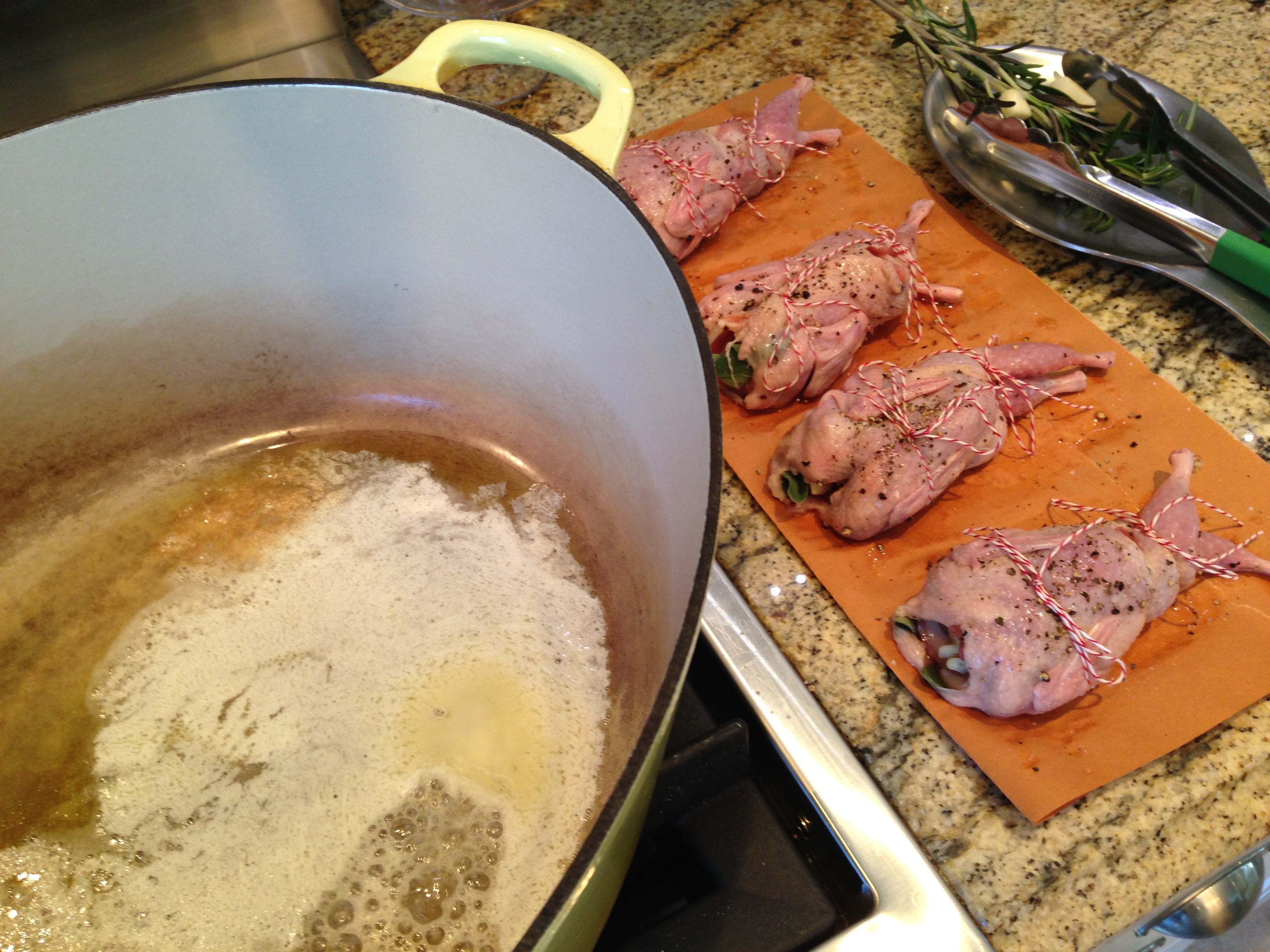 Pancetta Stuffed Quail with White Wine Sauce
