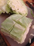 Place them cut side down and cut into fours. This will leave you with nice neat squares of cabbage.