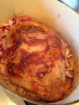 Alternatively, at the end of the braising time, you can remove the meat to a roasting pan un-sliced and cover with the gravy. Cover the pan with foil and place in the fridge overnight. When you plan to serve the meat, you can bring it to room temperature and slice with a sharp knife. Layer the meat back in the pan with the gravy and place in the oven for thirty to forty-five minutes…..Serve!! So yummy!! The family will love it!