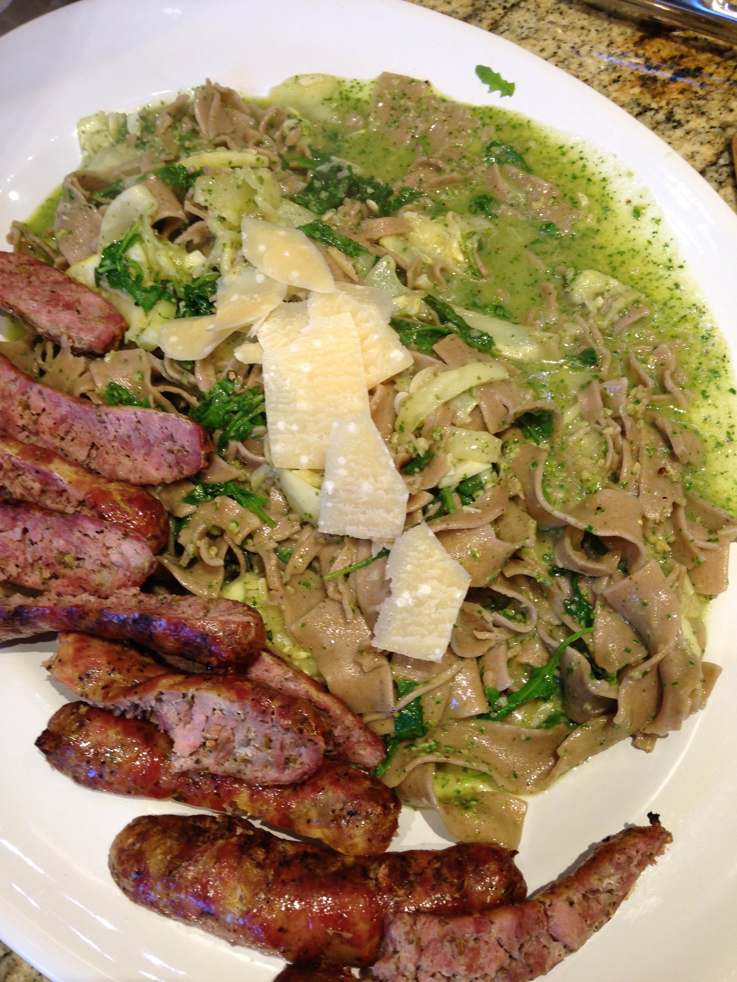 Northern Farmhouse Bourbon Barrel Cracked Pepper Pappardelle with Arugula Pesto and Zucchini